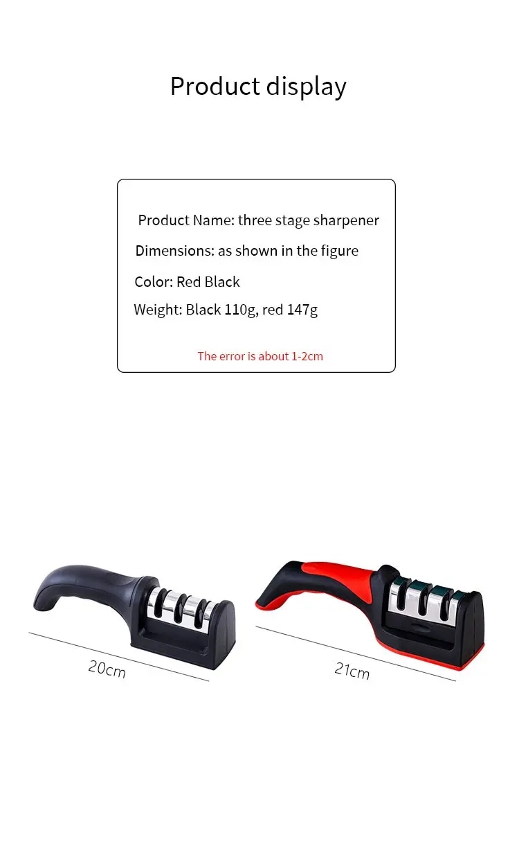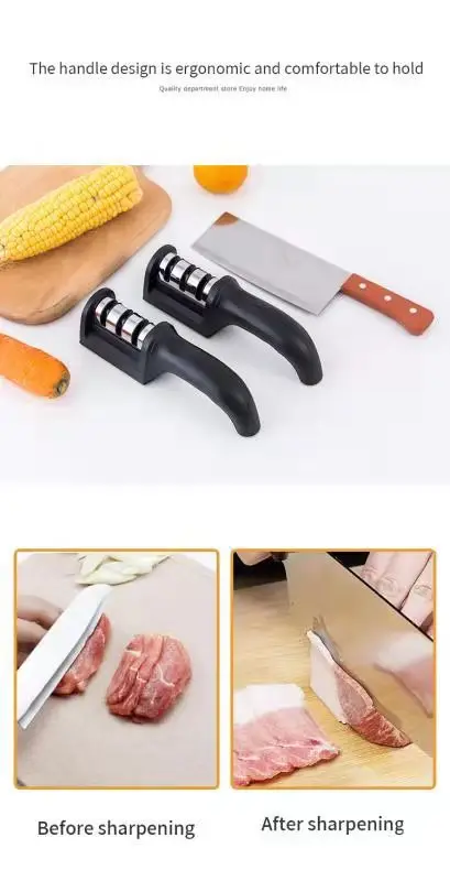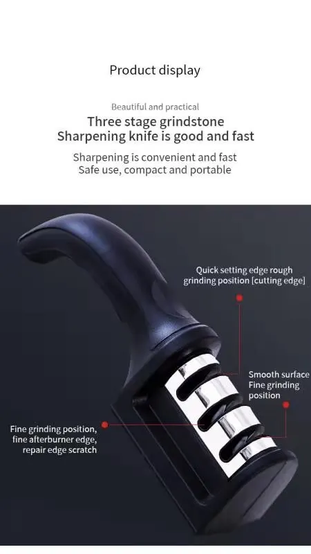 • Design de três segmentos para nitidez versátil :O design de três segmentos deste apontador de faca permite uma afiação versátil, tornando-o uma ferramenta obrigatória em qualquer cozinha.